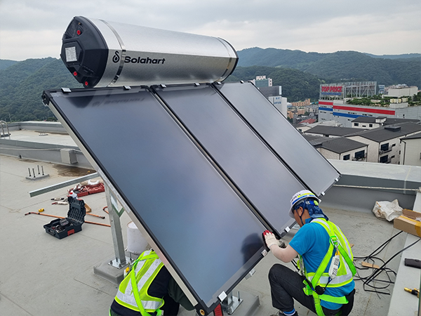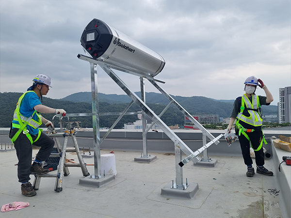 태양이 지구로 방사하는 열에너지를 이용해 온수를 생산하는 장치입니다. 태양열은 온실가스 배출 없는 무공해 에너지이고, 기존의 화석연료에 비해 생산 가능한 지역적 편중이 적고, 다양한 적용 및 이용이 가능하다는 장점이 있습니다.